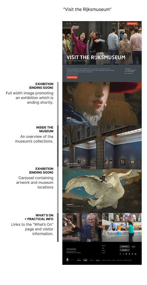 For example, we looked into the Rijksmuseum, which had a handling similar to what we were aiming for: the integration of both exhibitions and the permanent collection to give visitors a better understanding of what they could see.