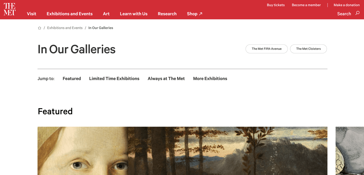 A dedicated page to give users a solid overview of all that's viewable in The Met's galleries