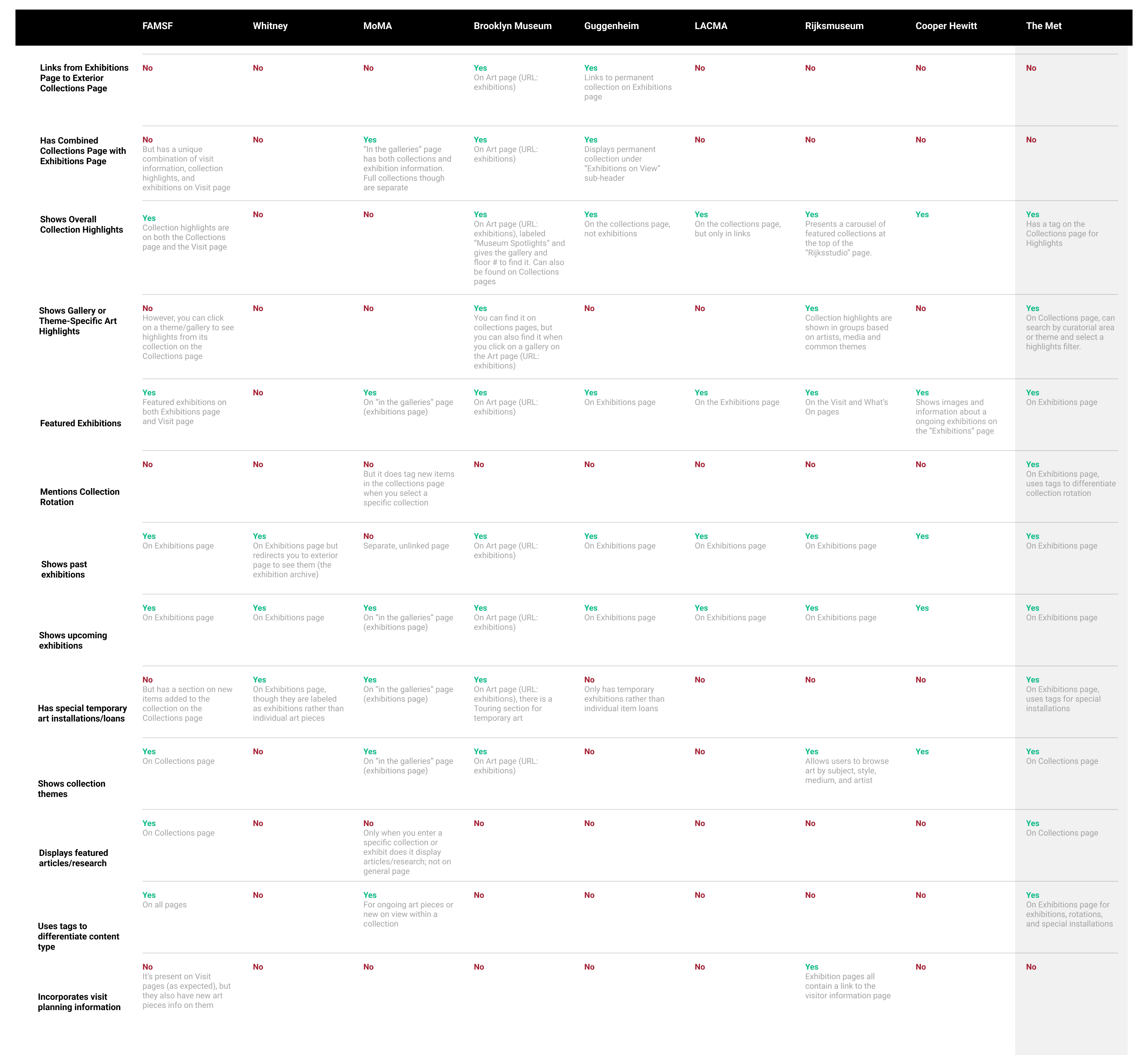 While few museums have a collection at the scale of The Met, we still conducted a competitive analysis to figure out how other museums organized their exhibitions.