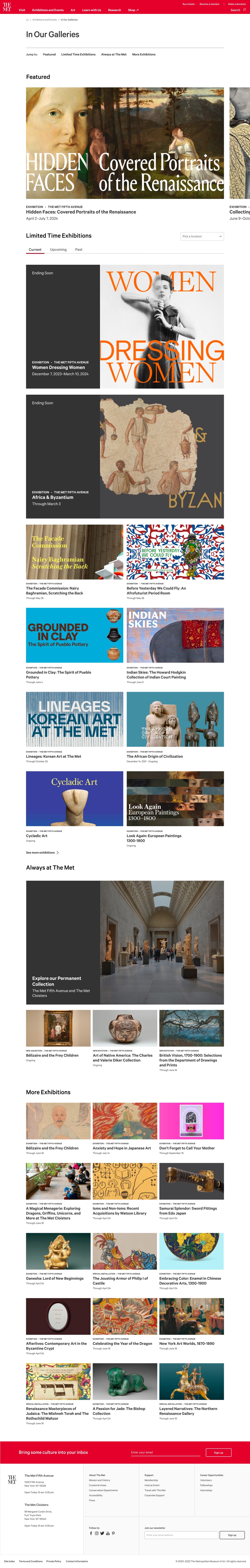 The Met's website doesn't currently have a page where users can find everything they can visit in the galleries at a given time. The "Exhibitions" page is separate from "The Met Collection", which can be frustrating for potential visitors. It's hard to know what to see.