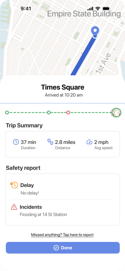 See real-time, customizable NYC public transit alerts to feel secure in the route you’re taking. Build a safety-first community by reporting incidents, and level up your avatar as you become a trusted reporter.