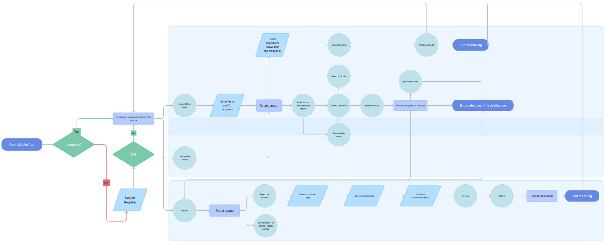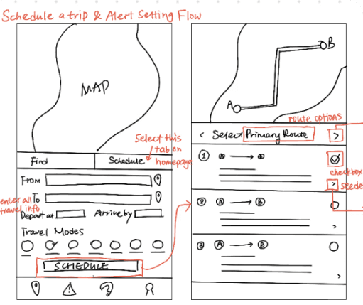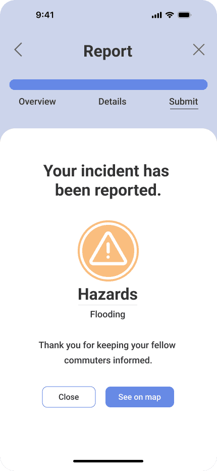Our tested flows were taking a route and checking for incidents during the trip (task 1), reporting an incident (task 2), and setting up alerts for a daily commute (task 3).
