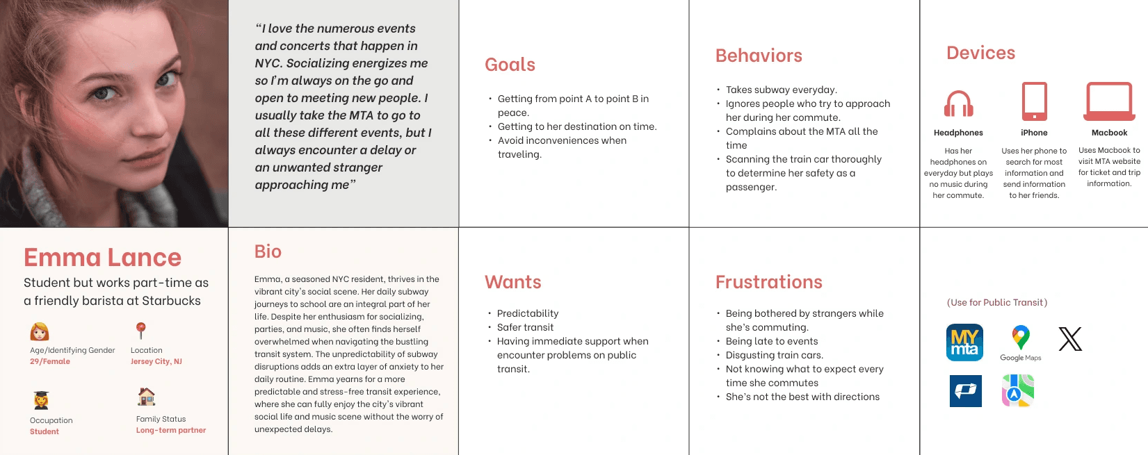 Through surveys, persona creation, journey mapping, and interviews, we built an informed view of how to create what would become SUBWAZE.