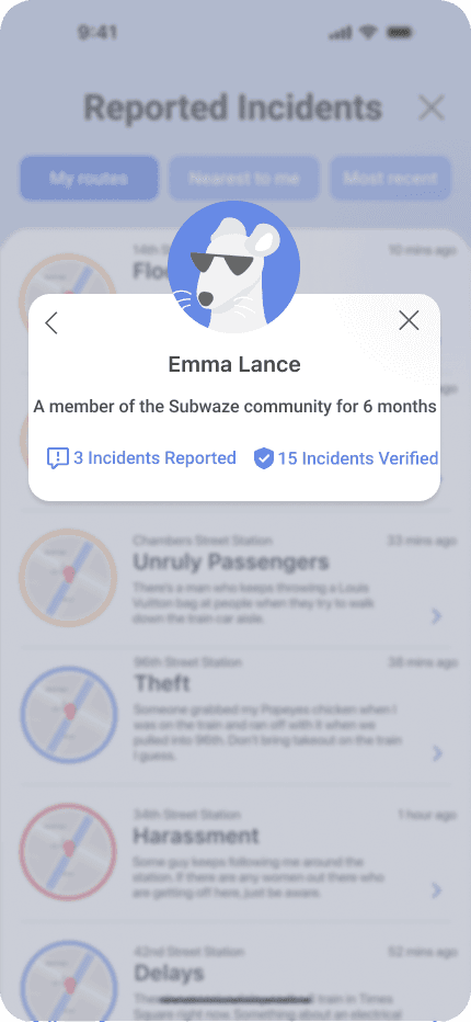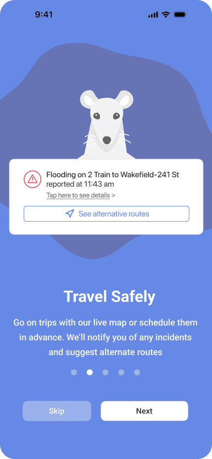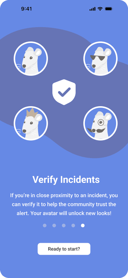 We wanted to encourage users to report incidents by making reporting feel gamified and minimizing anxiety. We also wanted a distinctly NYC design, using a classic subway rat as our app’s mascot.