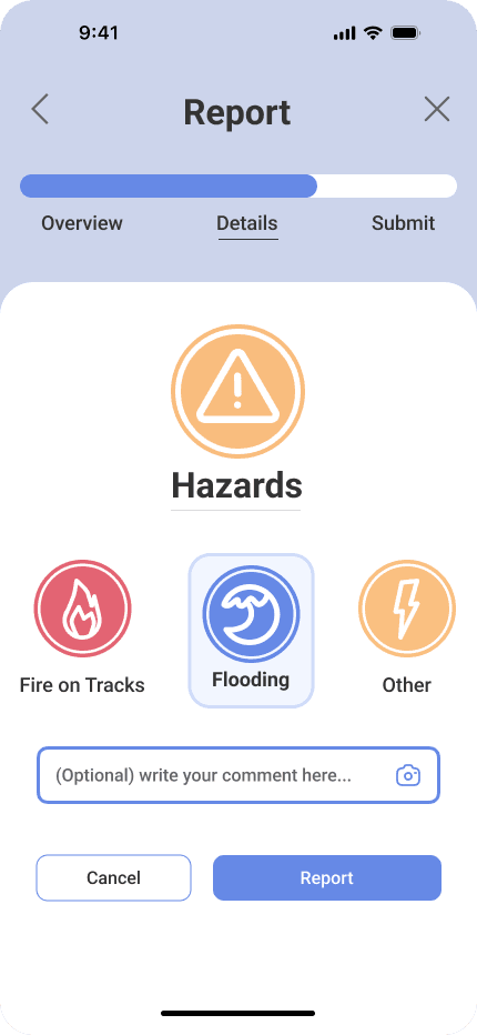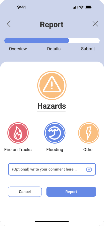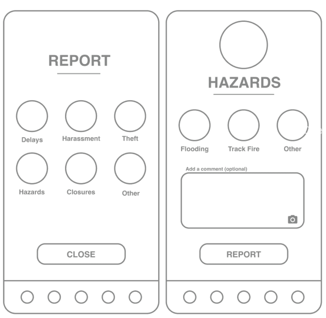 Our main design considerations included refining the information in status messaging, optimizing the number of screens/interactions to perform actions like reporting, and focusing on recognizable visual cues for a lightened mental load on our users.