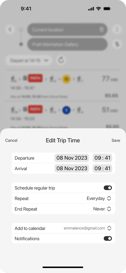 Users wanted to save regular routes (like a work commute) to minimize the mental effort of checking the app.