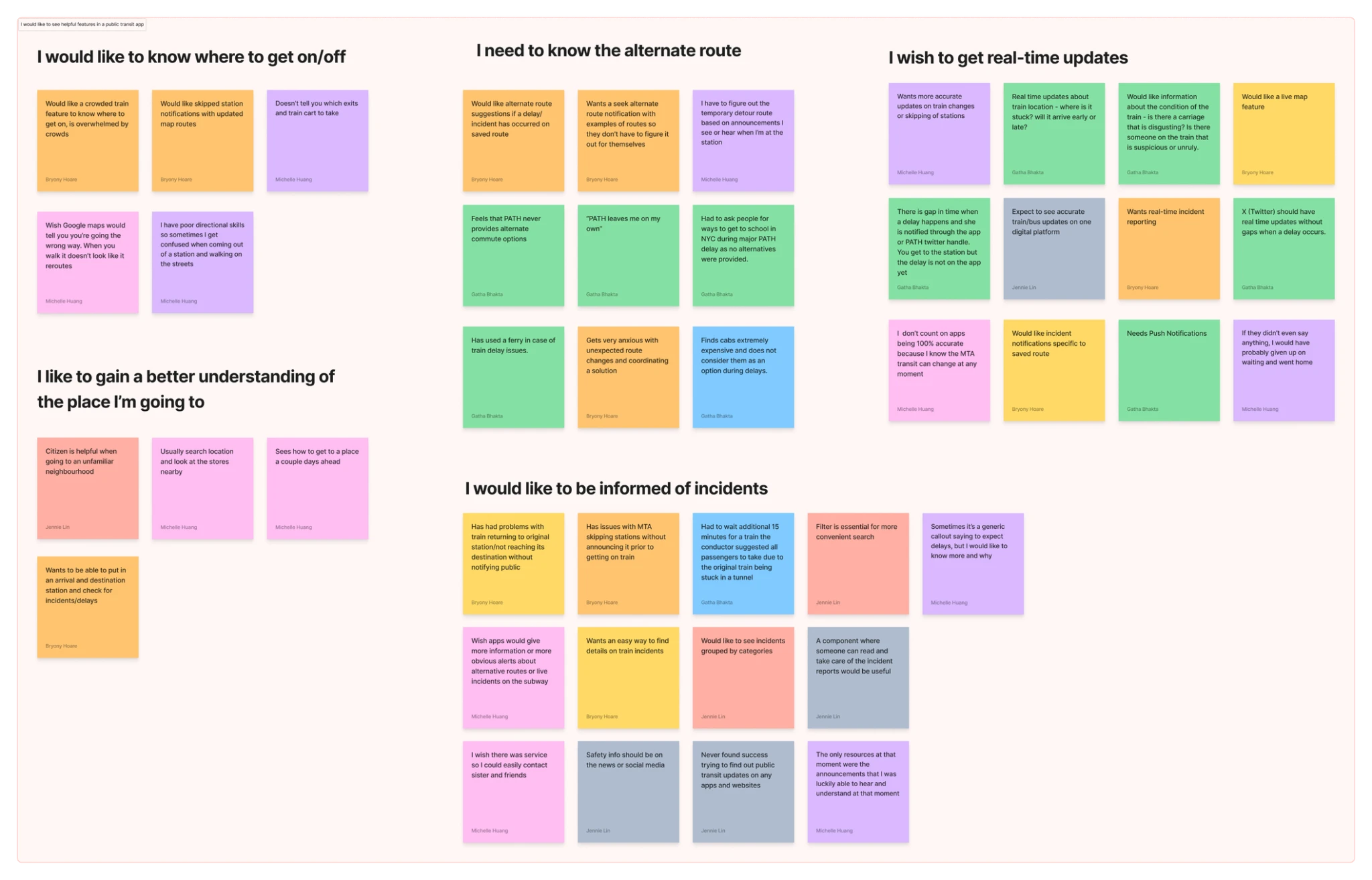 The anxiety and frustration came across strongly. A few key features that interviewees kept circling back to were safety from other passengers, delays/lack of accurate timing, and not being aware of alternate train routes.